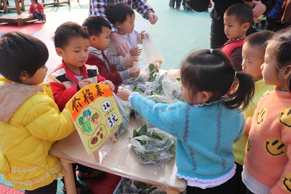 幼儿园的种植园是孩子们的一片乐土,专供孩子们参与蔬菜种植。近期孩子们惊喜地发现种植园地里的蔬菜长势喜人。为了追随孩子的兴趣,让种植园地真正发挥它的价值,同时培养孩子们热爱劳动的良好品质,让幼儿更真实地体验“买卖与交易”,12月9日,湖口一幼特开展萌娃卖菜社会实践活动。