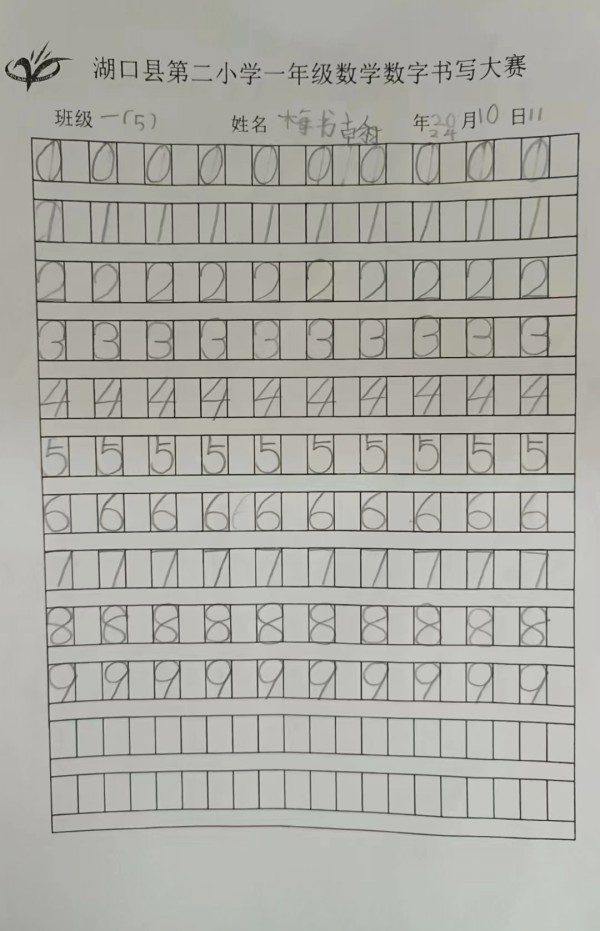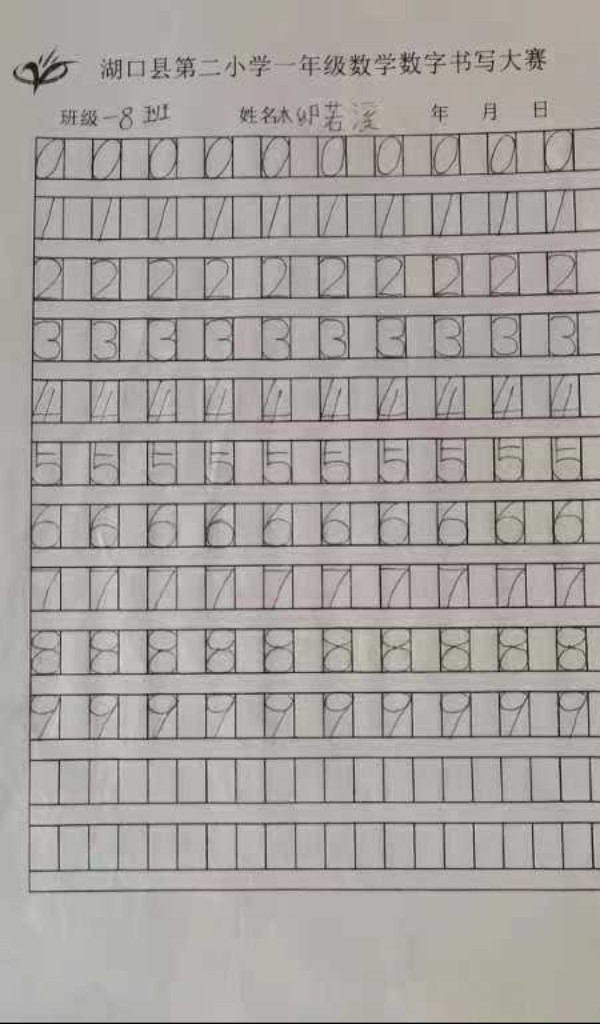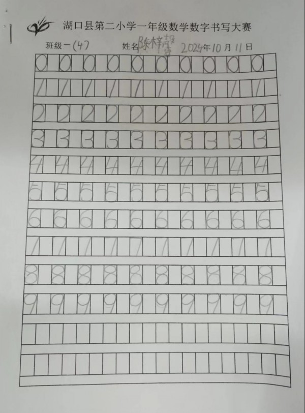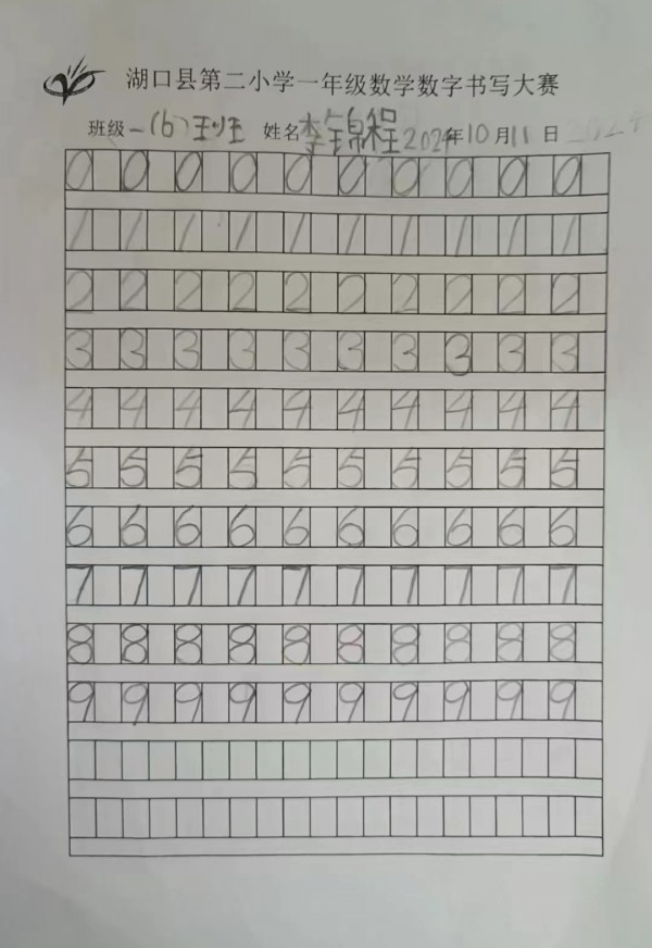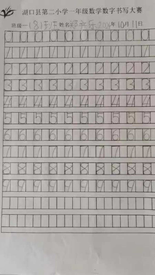 数学零起点教学,从数字书写开始。本次比赛活动,为第二小学一年级的学子们提供了一个展现自我风采的平台,激发了同学们对于数字书写的浓厚兴趣,培养了孩子们“提笔必认真,书写必规范”的书写态度,也提高了他们的数学审美能力。(邹爱)